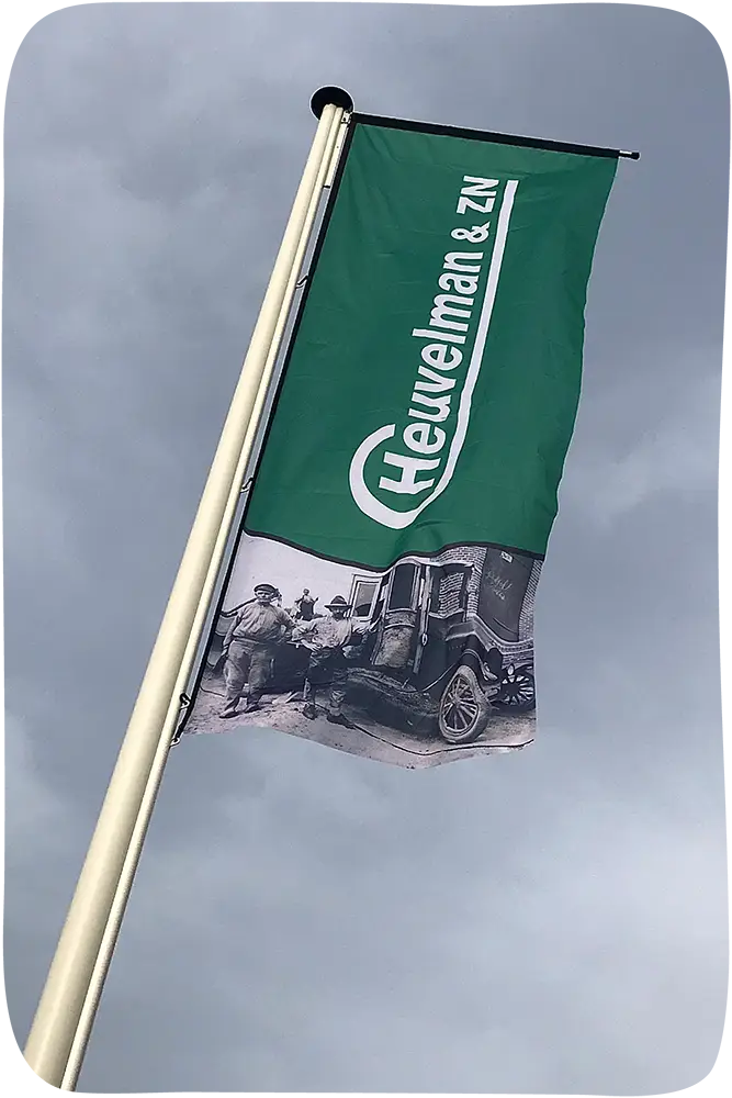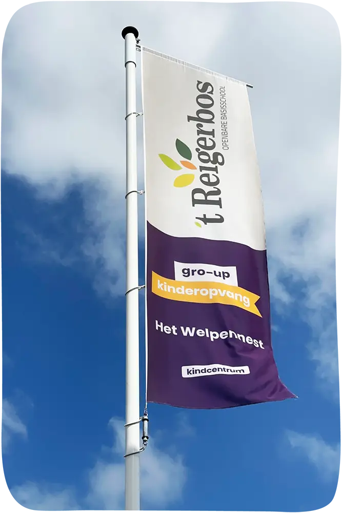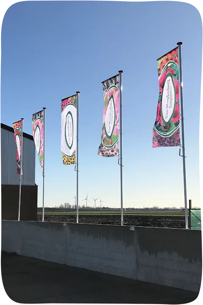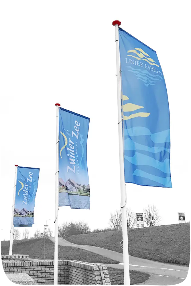 Je hebt het vast weleens ergens gezien. Een bedrijf met een paar vlaggenmasten op een rijtje voor het pand. Met banieren in de huisstijl van het bedrijf. Ze vallen op en wapperen lekker met de wind mee. Als de banieren niet versleten zijn, ziet het er prachtig uit. Vlaggen met een mooi ontwerp en de vlaggenmasten precies even ver uit elkaar.